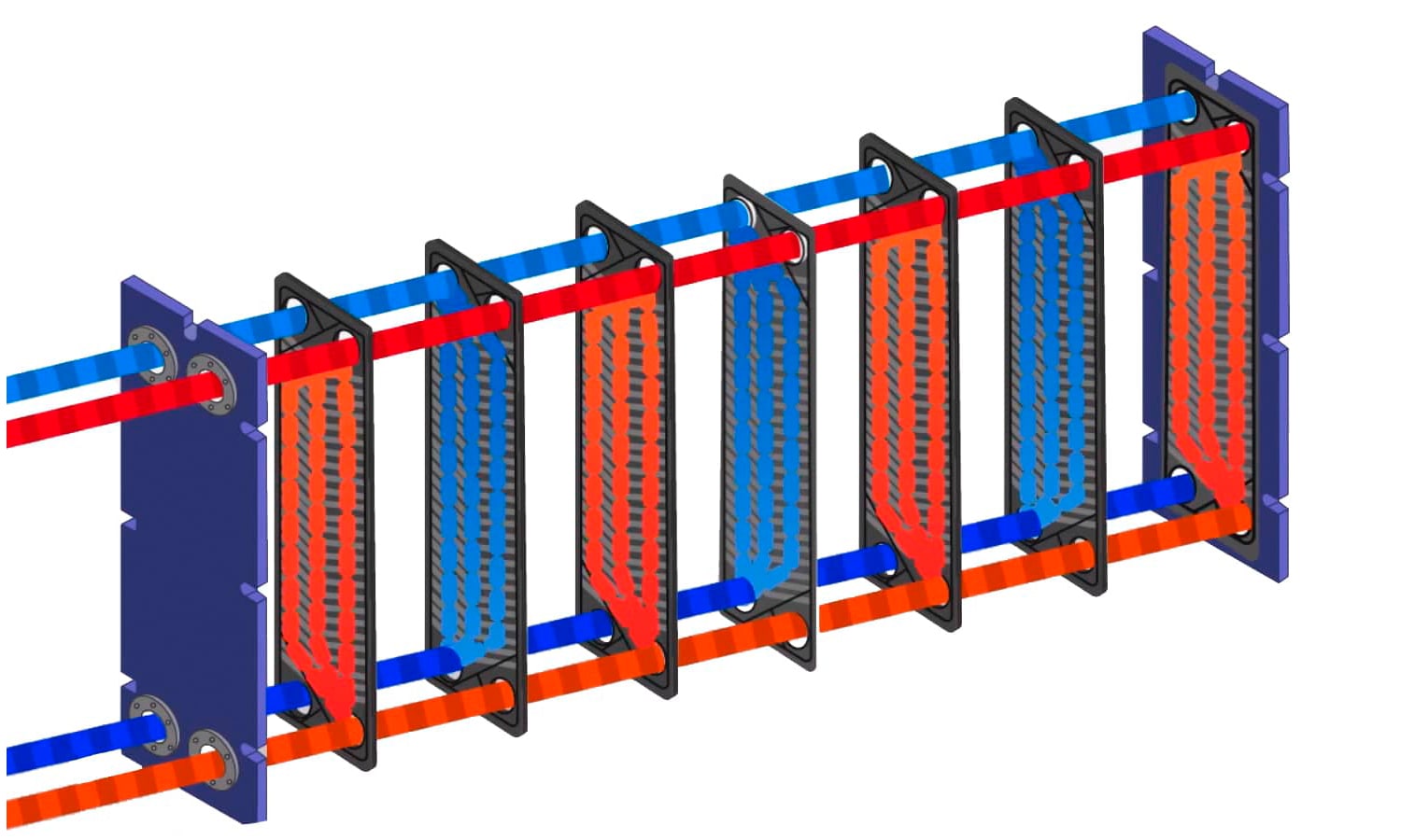 با توجه به این که سیال گرم از سمت راست به مرکز مبدل وارد می گردد و دمای آن رفته رفته کم می شود ایزو سرفیس ها نیز ثابت می کنند بیشترین انتقال حرارت مبدل در سمت چپ آن انجام می شود.