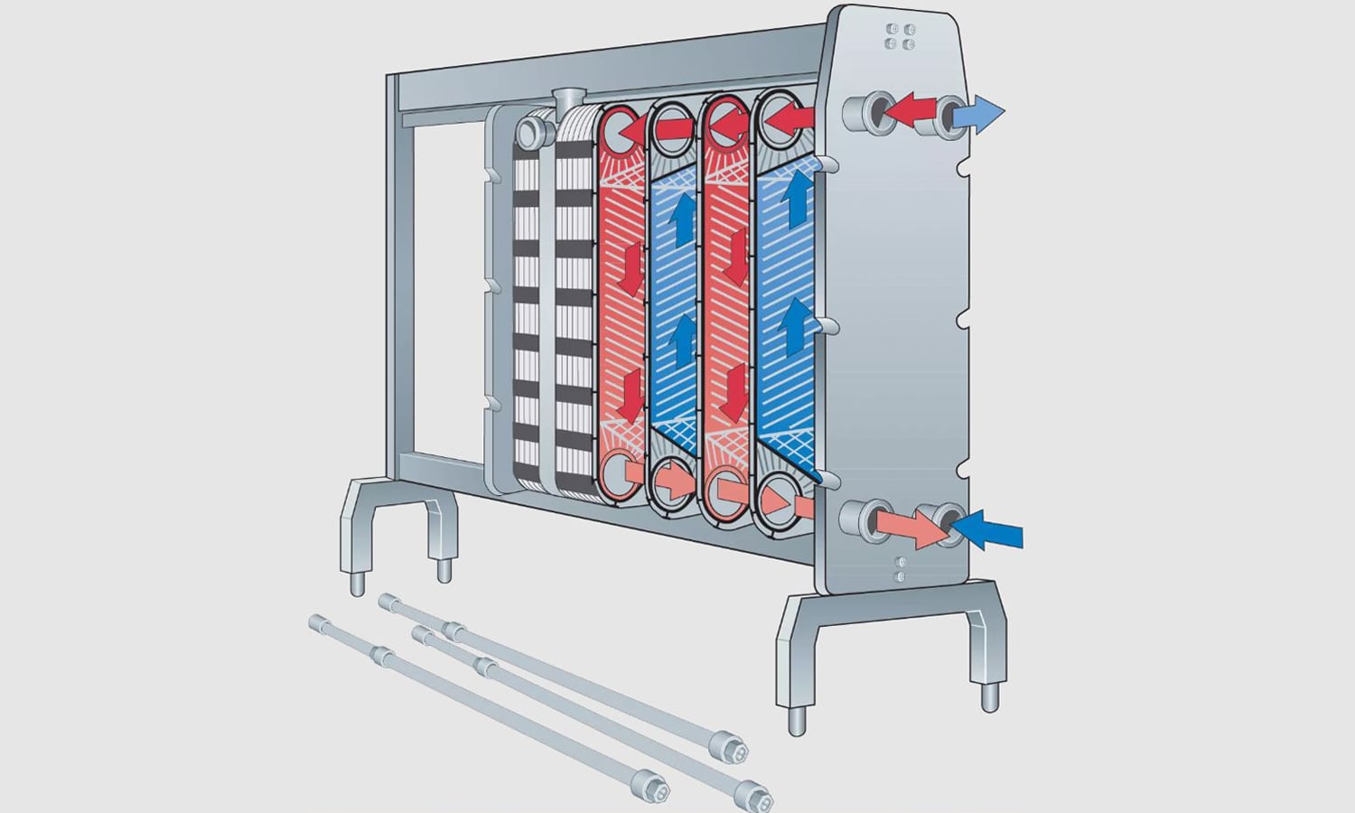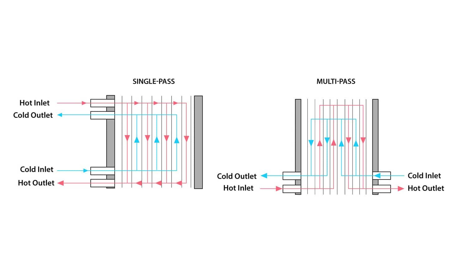 استفاده از دو مجرا با حجم برابر عملا باعث می شود که این نوع مبدل ها در بسیاری از موارد بلا استفاده شوند. چرا که گاهی نیاز است یک سیال با دبی بالا به مبدل وارد شود و سیال دیگر با دبی پایین وارد مجرای خود شود. در این صورت ایجاد فشار لازم برای دبی بالا، نیازمند کار بسیار بیشتری نسبت به سیال دیگر است.
