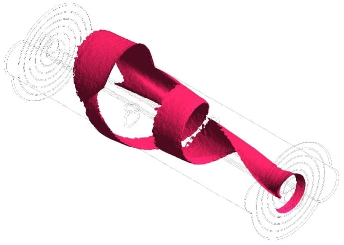 همان طور که در وکتورها نیز قابل مشاهده است در مبدل حرارتی حلزونی صفحه ای عمده جریان سیال سرد از نیمه سمت چپ مبدل عبور می کند حال آن که عمده جریان سیال گرم در رینولدز های پایین از نیمه سمت راست مبدل عبور می کند. البته در رینولدزهای بالاتر عمده جریان سیال گرم نیز از سمت چپ مبدل عبور می کند. این پدیده عملا باعث می شود نصف سمت چپ این مبدل نسبت به نصف دیگر آن انتقال حرارت بالاتری داشته باشد. در شکل زیر نیز ایزوسرفیس ها این پدیده را تایید می کنند.